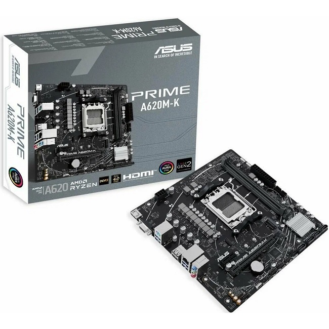 Материнская плата ASUS PRIME A620M-K, AM5/AMD A620/2xDDR5/PCI-Ex16/M.2/SB7.1/GLAN/HDMI/VGA/mATX (90MB1F40-M0EAY0)