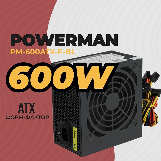 Блок питания Powerman 600W PM-600, 120 мм, ATX, BOX (PM-600ATX-F-BL)