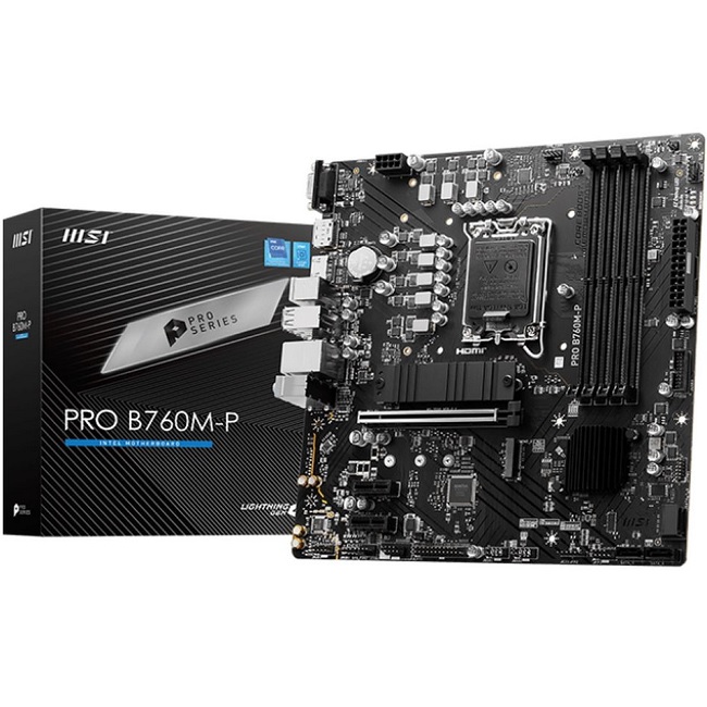 Материнская плата MSI PRO B760M-P (LGA1700/B760/4xDDR5/PCI-Ex16/2xPCI-Ex1/2xM.2/SB7.1/GLAN/DisplayPort/HDMI/VGA/mATX)