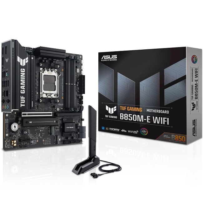 Материнская плата ASUS TUF GAMING B850M-E WIFI (AM5/AMD B850/4xDDR5/3xPCI-Ex16/PCI-Ex1/3xM.2/SB/Wi-Fi/BT/DP/HDMI/mATX)