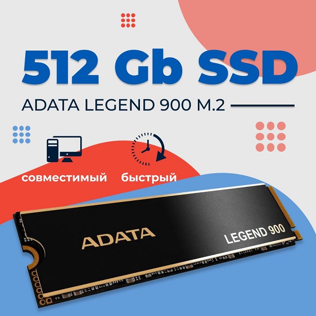 Жесткий диск SSD M.2 512Gb ADATA Legend 900, 7000/4700MBs, 630000 IOPS, TLC 3D NAND, 2280. PCI-E4.0x4 (SLEG-900-512GCS)