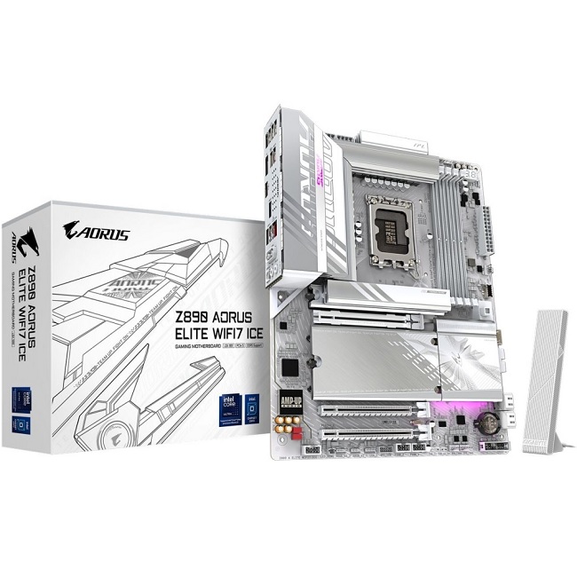 Материнская плата GIGABYTE Z890 AORUS ELITE WIFI7 ICE (LGA1851/Z890/4xDDR5/3xPCI-Ex16/4xM.2/Wi-Fi/BT/GLAN/DP/HDMI/ATX)