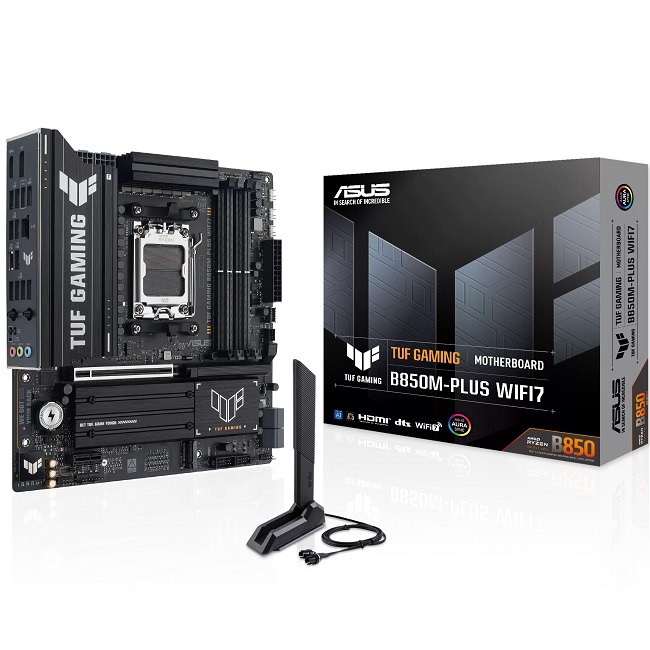 Материнская плата ASUS TUF GAMING B850M-PLUS WIFI7 (AM5/AMD B850/4xDDR5/PCI-Ex16/3xM.2/SB/Wi-Fi/BT/GLAN/DP/HDMI/mATX)