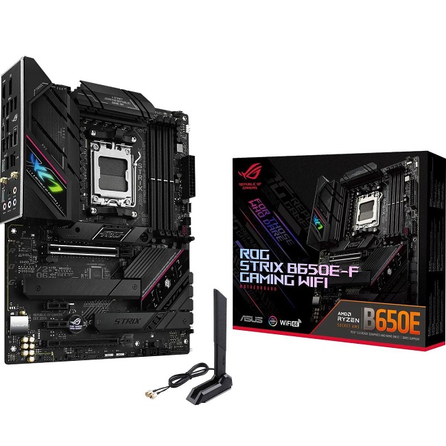Материнская плата ASUS ROG STRIX B650E-F GAMING WIFI (AM5/AMD B650E/4xDDR5/2xPCI-Ex16/3xM.2/SB7.1/Wi-Fi/BT/HDMI/DP/ATX)