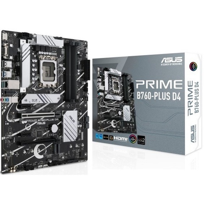 Материнская плата ASUS PRIME B760-PLUS D4 (LGA1700/B760/4xDDR4/2xPCI-Ex16/3xM.2/SB7.1/GLAN/Wi-Fi/BT/DP/HDMI/VGA/ATX)