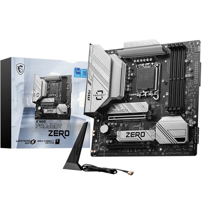 Материнская плата MSI B760M PROJECT ZERO (LGA1700/B760/4xDDR5/2xPCI-Ex16/2xM.2/SB7.1/GLAN/Wi-Fi/BT/HDMI/DP/mATX)