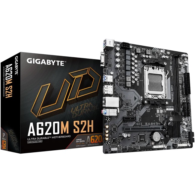 Материнская плата GIGABYTE A620M S2H 2.0 (AM5/AMD A620/2xDDR5/PCI-Ex16/M.2/SB7.1/GLAN/DisplayPort/HDMI/VGA/mATX)